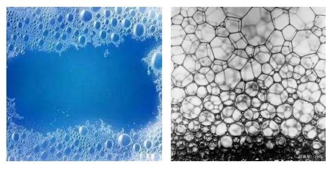 In pure water, foam cannot survive in the liquid for a long time due to the high surface tension between air and bubbles. In water containing surfactants, foam is relatively stable.
