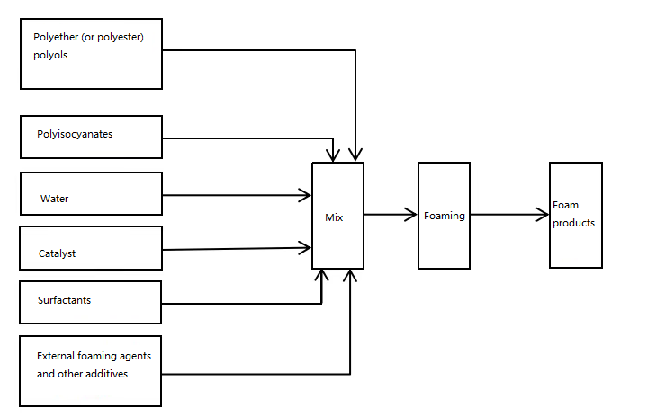 The one-step process flow of Flexible polyurethane foam is as follows: