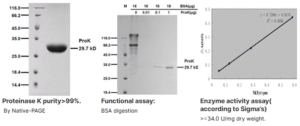 Proteinase K is frequently used in the field of molecular biology. When preparing nucleic acids, proteinase K can remove impurities and rapidly inactivate nucleases, preventing them from degrading target DNA and RNA. In addition, proteinase K has other advantages, it retains its activity in the presence of denaturing agents, such as SDS, urea, EDTA, etc., which is quite different from other proteases (such as trypsin, chymotrypsin).