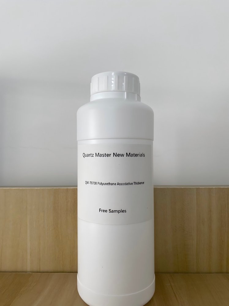 QM-T9708 is a non-ionic polyurethane thickener that forms micelles in the aqueous phase. The hydrophobic ends of the thickener molecules adsorb onto hydrophobic structures such as latex particles and surfactants, forming a three-dimensional network structure that increases the viscosity of the system. It effectively improves thickening efficiency under medium shear forces and provides excellent leveling and anti-sagging properties. Compared to other water-based thickeners, it exhibits superior overall performance and has minimal impact on the water resistance and salt spray resistance of the paint film.