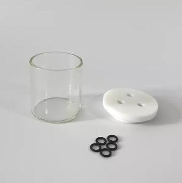 Three 6.2mm electrode holes are standard; custom holes are available. Salt bridges can be added.