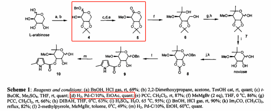 The 5% Pd/C catalyst (Strem Chemicals) exhibited optimal performance, characterized by the shortest reaction time (1.5–2 days), the highest yield (82–84%), and the lowest degree of aromatic protecting group saturation (10%). Furthermore, through a pretreatment method (DMF:H2O, 37% HCl), the formation of byproducts resulting from the saturation of aromatic protecting groups was avoided, thereby preserving the desired 6-O-acetylation pattern.